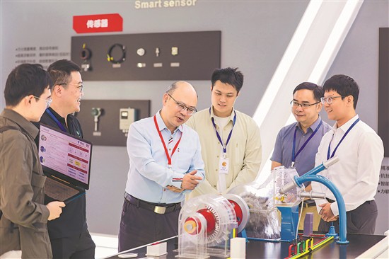 10月9日,位于福建省福州市閩侯縣的福建省力得自動(dòng)化設(shè)備有限公司車間內(nèi),全國五一勞動(dòng)獎(jiǎng)?wù)芦@得者、福州市互聯(lián)網(wǎng)協(xié)會(huì)勞模工匠助企行服務(wù)隊(duì)隊(duì)長陳巧(左三)帶領(lǐng)隊(duì)員走進(jìn)企業(yè),與青年技術(shù)工人互相交流、傳授技能。